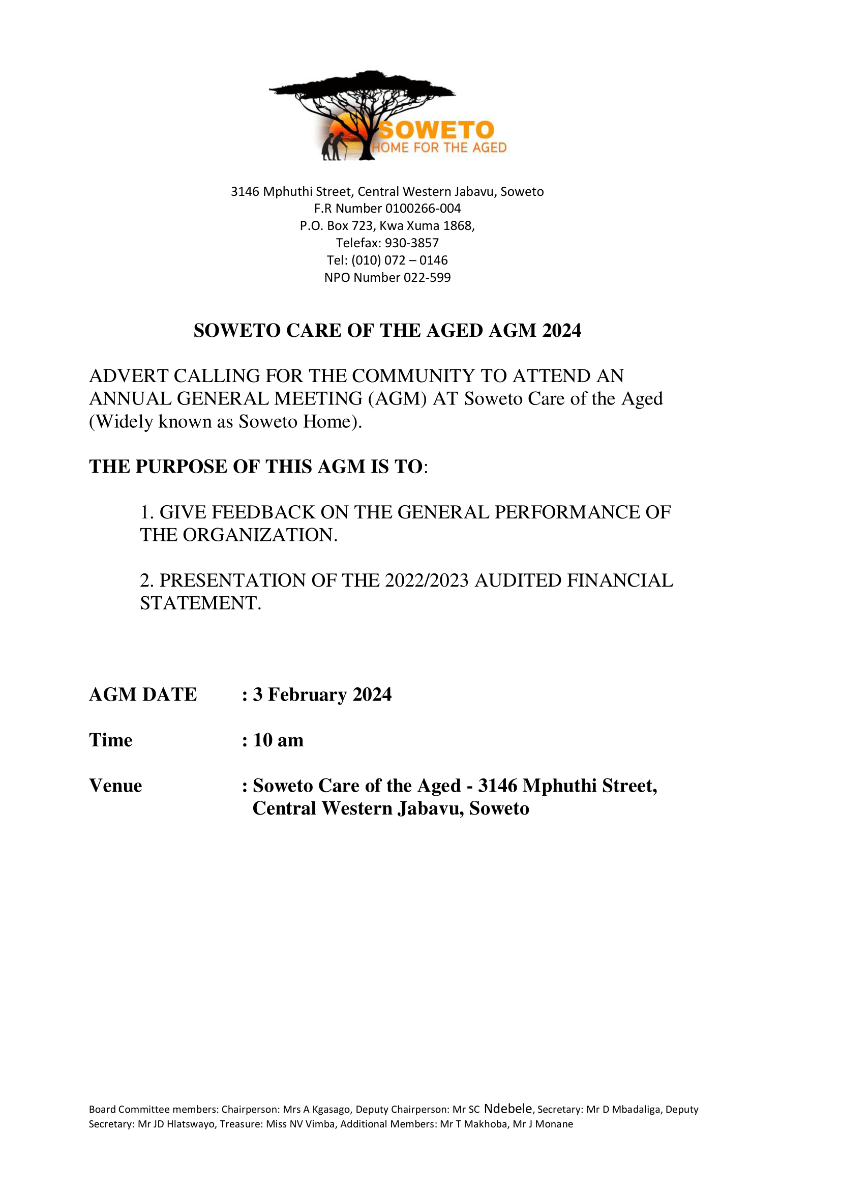 SOWETO HOME OF THE AGED AGM 2024